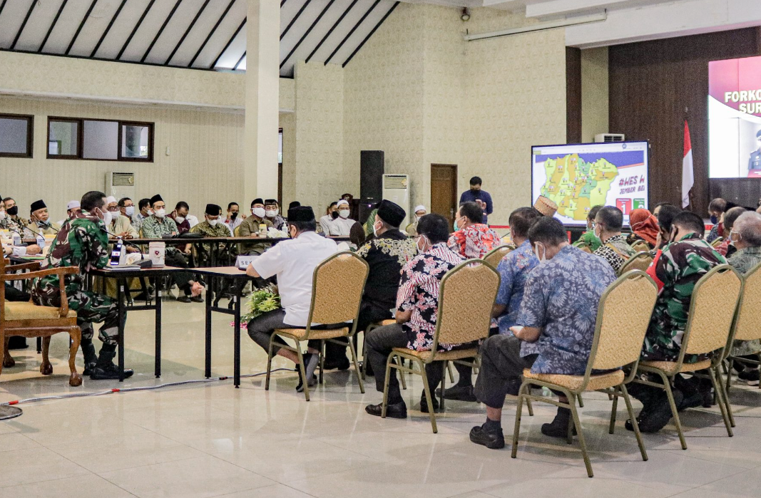 JEMBER.SGI.08/05/2021. Rapat Koordinasi yang di pimpin langsung oleh Bupati Jember Ir.H.Hendy Siswanto di ikuti forum Komunikasi Pimpinan Daerah ( Forkopimda ) dan para Ulama Terkait Surat Edaran Menteri Agama RI NO 07 Tahun 2021 tentang panduan penyelengaraan sholat Idul fitri Tahun 1442 H/2021 masehi di tengah pendemi COVIT19.