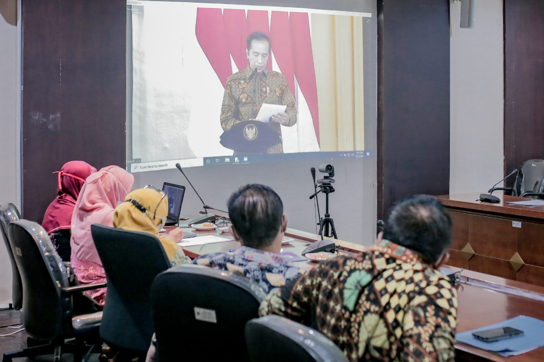 Jember.SGI.26/05/2021. Rapat Koordinasi Nasional secara virtual bersama Presiden RI Ir.H.Joko widodo yang diikuti oleh Bupati Jember Ir.H.Hendy Siswanto dan beberapa kepala OPD yang Terkait di kantor Pemkab Jember, kamis 26/05/2021.