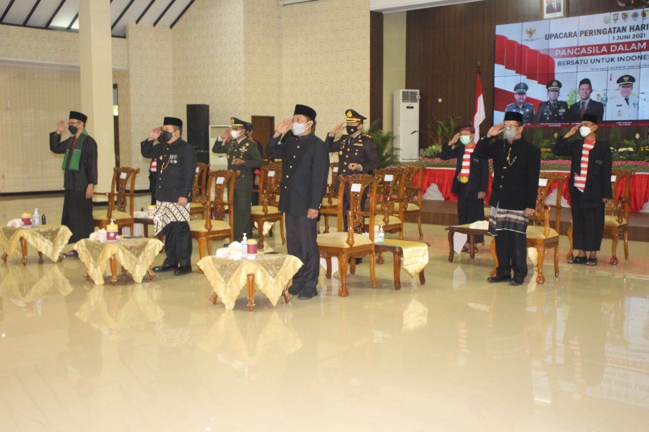 JEMBER.SGI. 01/06/2021. Bertempat di pendopo Wahyawibawagraha Jember telah dilaksanakan upacara Virtual Peringatan Hari Lahir Pancasila tahun 2021 dengan tema,” Pancasila dalam Tindakan, Bersatu Untuk Indonesia Tangguh,” Selasa 01/06/2021 pukul 08.00 s/d 09.00 wib.