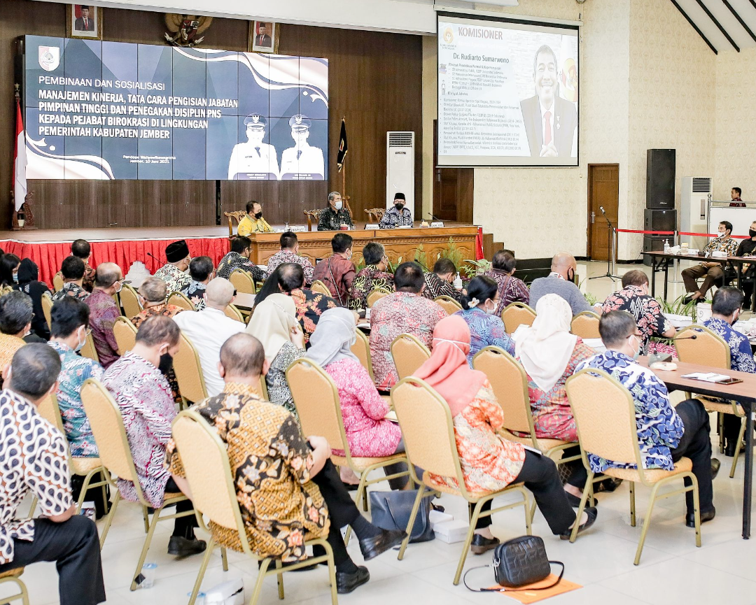 Jember.SGI.10/06/2021. Untuk memberikan bimbingan Teknis kepada para ASN di Pemerintah Kabupaten Jember, Bupati Hendy Siswanto mengundang pengawas jabatan Pimpinan Tinggi pada Komisi Aparatur Sipil Negara(KASN) Indonesia Rudianto Sumawono, Kamis 10/06/2021.
