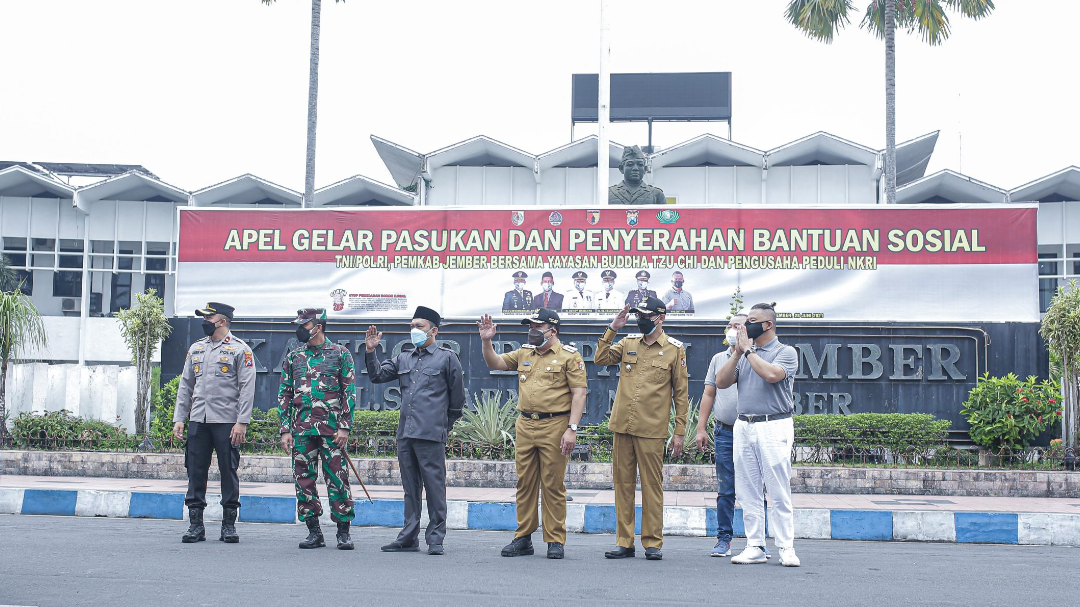 Bansos ini didapatkan dari Yayasan Buddha Tzu Chi dan Pengusaha Peduli NKRI,Bupati juga mengucapkan terima kasih atas Bantuan teman teman Buddha Tzu Chi dan Pengusaha Peduli NKRI,ini sangat membantu sekali terlebih suasana di Kabupaten Jember sekarang tren Covid 19 sedang meningkat.