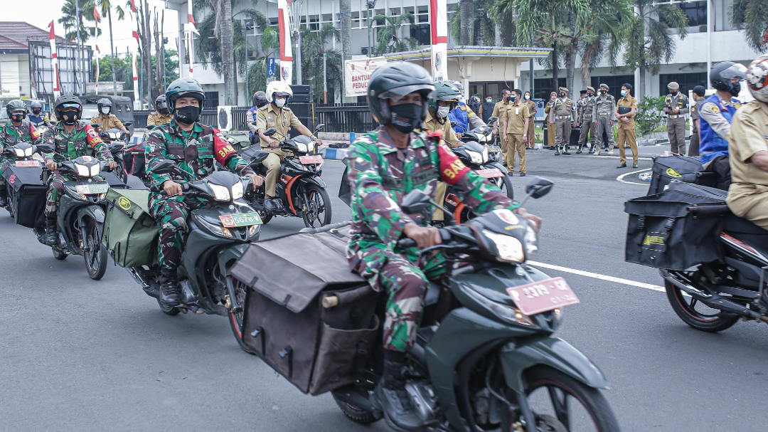 Setelah melakukan apel diteruskan dengan pelepasan pasukan Bansos oleh Bupati Hendy untuk mendistribusikan Bantuan Sosial yang berupa Beras kepada Warga Kabupaten Jember yang tidak mampu.