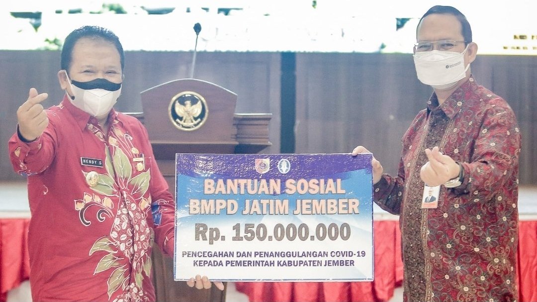 Jember.SGI.08/07/2021. Pemerintah kabupaten Jember mendapatkan bantuan dari Badan Musyawarah Perbankan Daerah (BMPD) Jember,untuk warga yang terdampak Covid 19, bantuan ini diterima langsung oleh Bupati Jember Ir.H.Hendy Siswanto di pendopo Wahyawawibawagraha,kamis 08/07/2021.