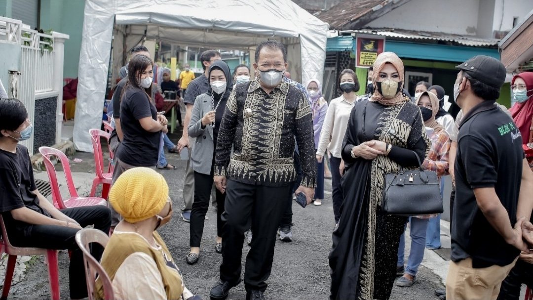 Jember.SGI.12/07/2021. Tinjau pelaksanaan Vaksinasi warga, Bupati Jember Ir.H.Hendy Siswanto didampingi ketua TP PKK kabupaten Jember Dra.Hj.Kasih Fajarini Yang dilaksanakan di lingkungan Ledok kelurahan Jember Kota kecamatan Kaliwates,Sabtu 10/07/2021.