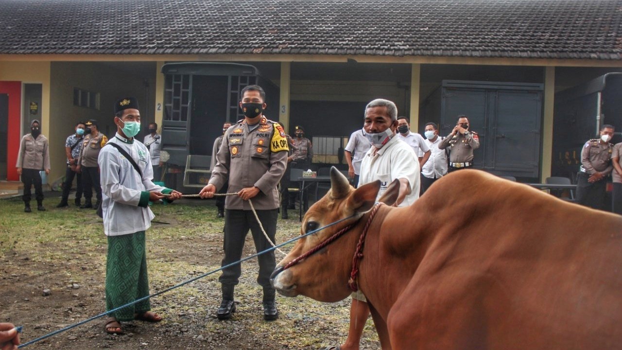Penyerahan hewan kurban sebagai rutinitas tahunan. Polres Jember berkomitmen terus meningkatkan kepedulian sesama untuk saling berbagi dan menjadi bagian partisipasi kepedulian sosial yang sangat diharapkan selama (PPKM) Darurat diberlakukan.
