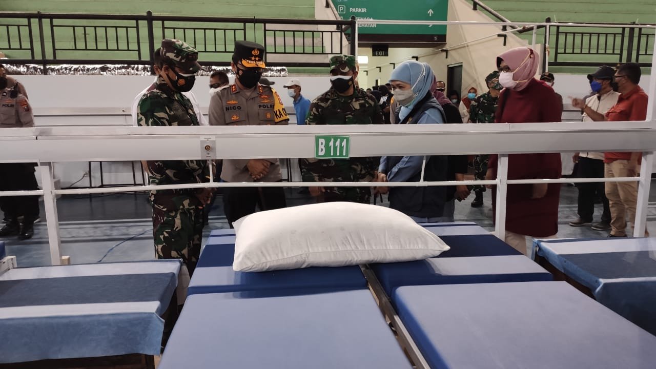 Jember.SGI.22/07/2021. Forkompimda Jatim memastikan kesiapan Rumah Sakit Darurat Indoor, yang disiapkan oleh Pemerintah Kota Surabaya, di Gelora Bung Tomo (GBT), pada Kamis sore (22/7/2021). RS Darurat Indoor ini sudah rampung persiapannya dan dalam waktu dekat siap digunakan.