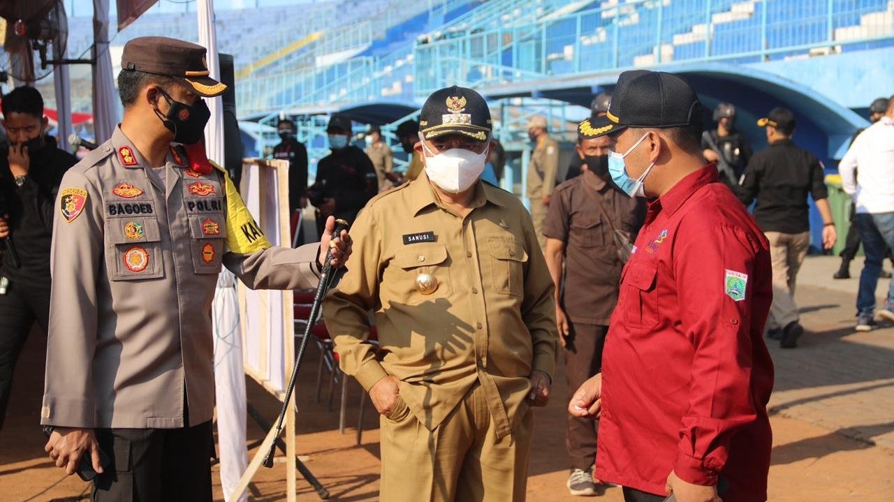 Malang.SGI. Pemerintah Kabupaten Malang bersama Polres Malang dan Kodim 0818 Malang-Batu melaksanakan kegiatan serbuan vaksinasi massal untuk masyarakat umum di Stadion Kanjuruhan Kepanjen, Malang, Minggu (25/7/2021) pagi.