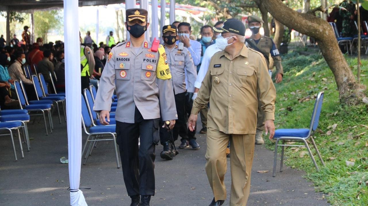Kapolres Malang AKBP Bagoes Wibisono mengatakan, serbuan vaksinasi massal hari ini ditargetkan untuk total 15.000 orang.