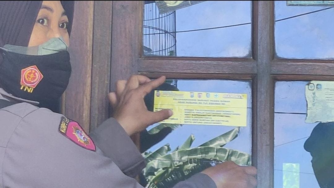 Banyuwangi.SGI. Kepolisian Resor Kota (Polresta) Banyuwangi dan Polsek jajaran melaksanakan pemasangan sticker contact person tracer Covid-19 secara serentak pada hari Senin, (2/8/2021) dalam rangka PPKM Level-4 di wilayah Kabupaten Banyuwangi.