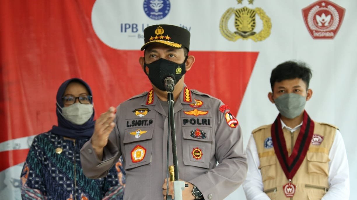 Jakarta.SGI. Kapolri Jenderal Listyo Sigit Prabowo meninjau program vaksinasi massal COVID-19 yang diinisiasi oleh oleh Unit Desa Presisi (UDP) Lembaga Penelitian dan Pengabdian kepada Masyarakat (LPPM) IPB, Aktivis Inspira (Ormas Kepemudaan), dan Mabes Polri.