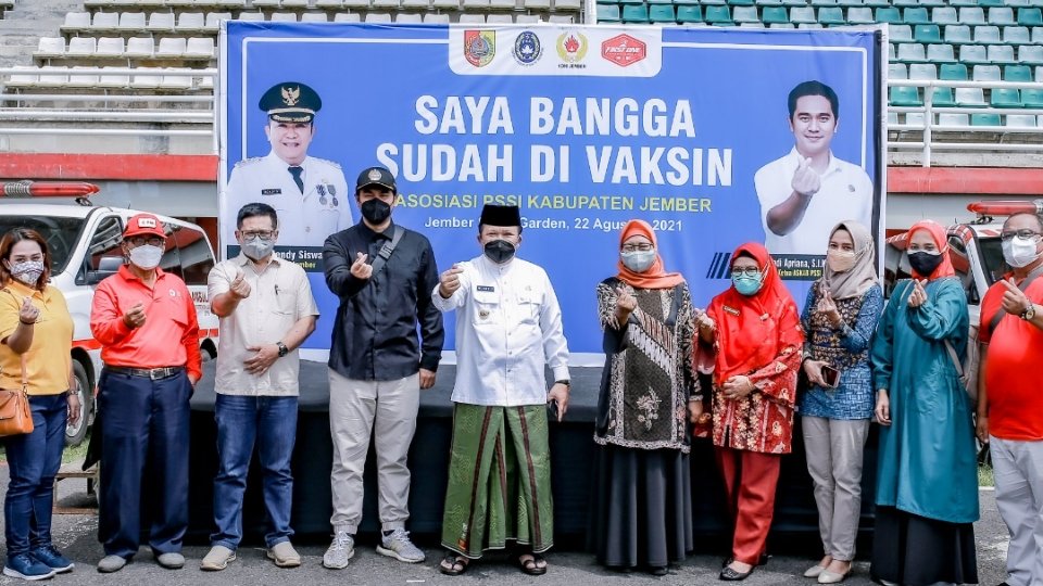 Antusias masyarakat yang cukup tinggi untuk vaksinasi, hari ini PSSI Jember Bersama Dinkes Jember mengadakan vaksin di Stadion JSG yang diikuti Warga sekitar dan luar JSG,” ujar Bupati.