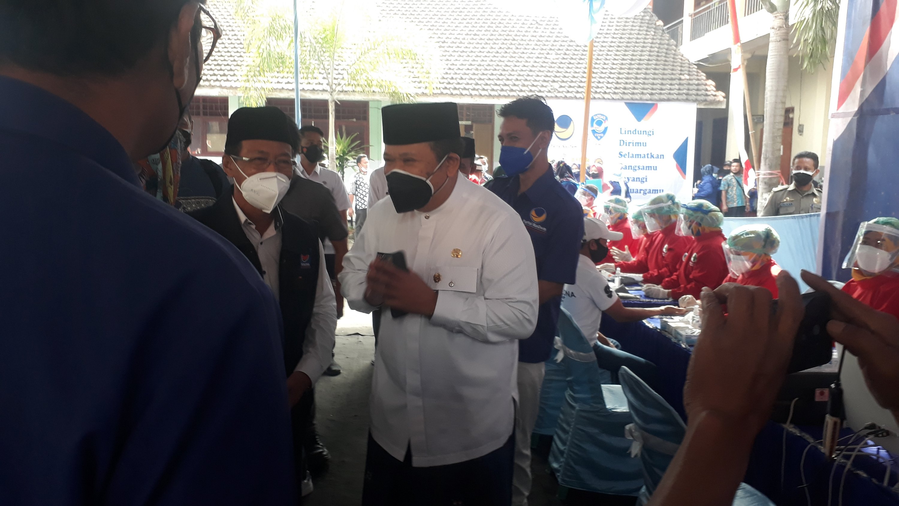 Untuk pelaksanaan Vaksinasi hari ini adalah para santri dan masyarakat dan di lanjutkan besok masih ada lagi,H Hendy menambahkan,” karna covid yang melanda Jember sangat meningkat setelah idul Fitri bulan mei begitu Juni naik sampai 50%, Juli naik lagi tertinggi bahkan di Jawa timur.