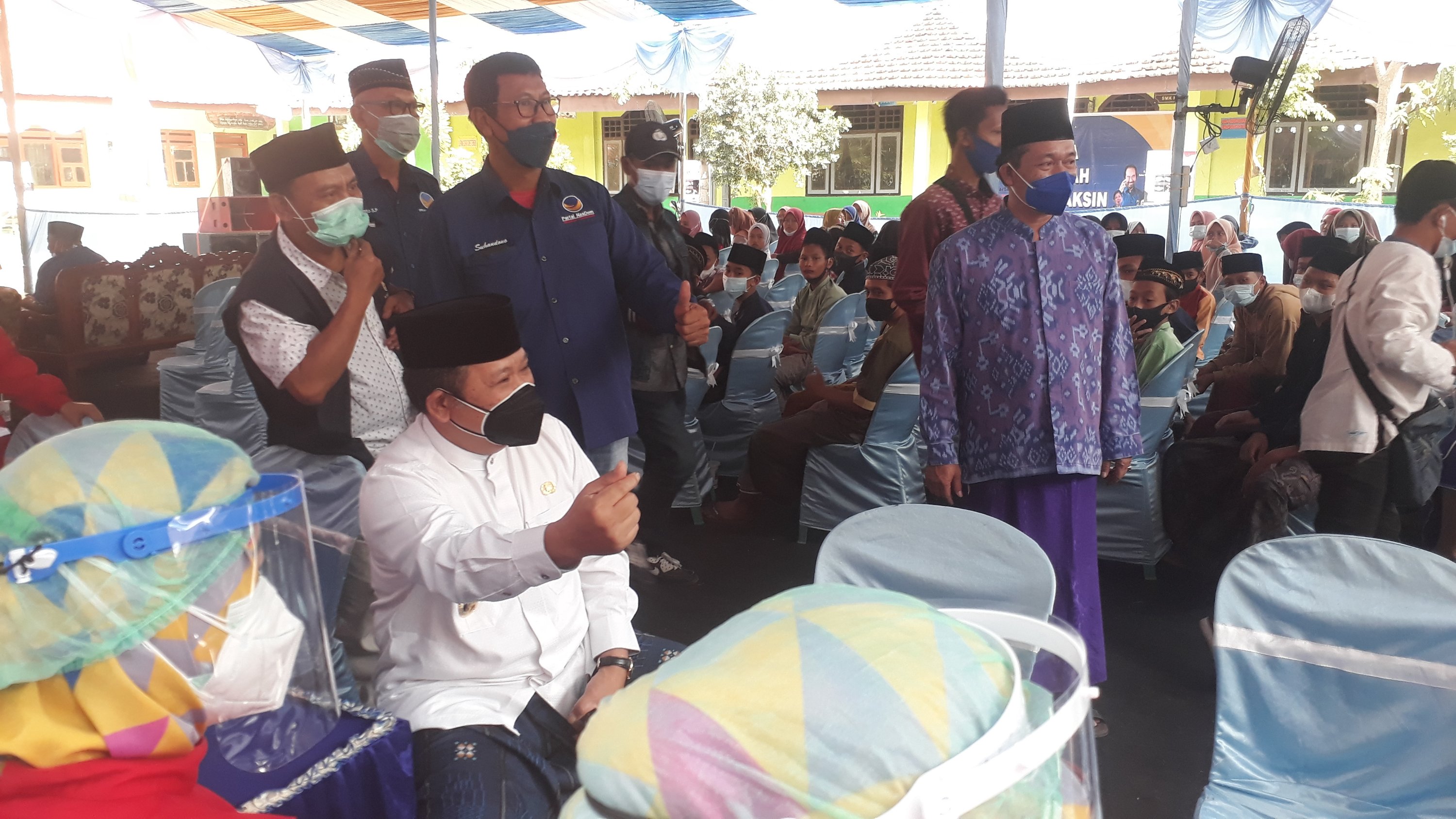 Jember.SGI. Bupati Jember hadiri pelaksanaan Vaksinasi ke pondok pesantren ngasor dusun Jatiagung desa Gumukmas, kecamatan Gumukmas,Kab. Jember untuk memberi dukungan kepada para santri agar cepat terbentuk imun di jember.Jum,at 27/08/2021.