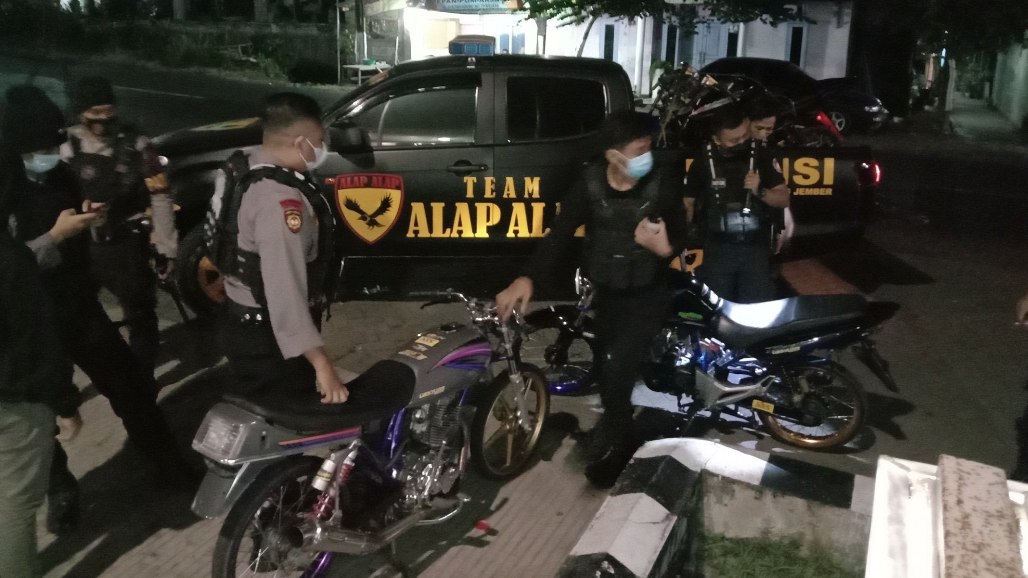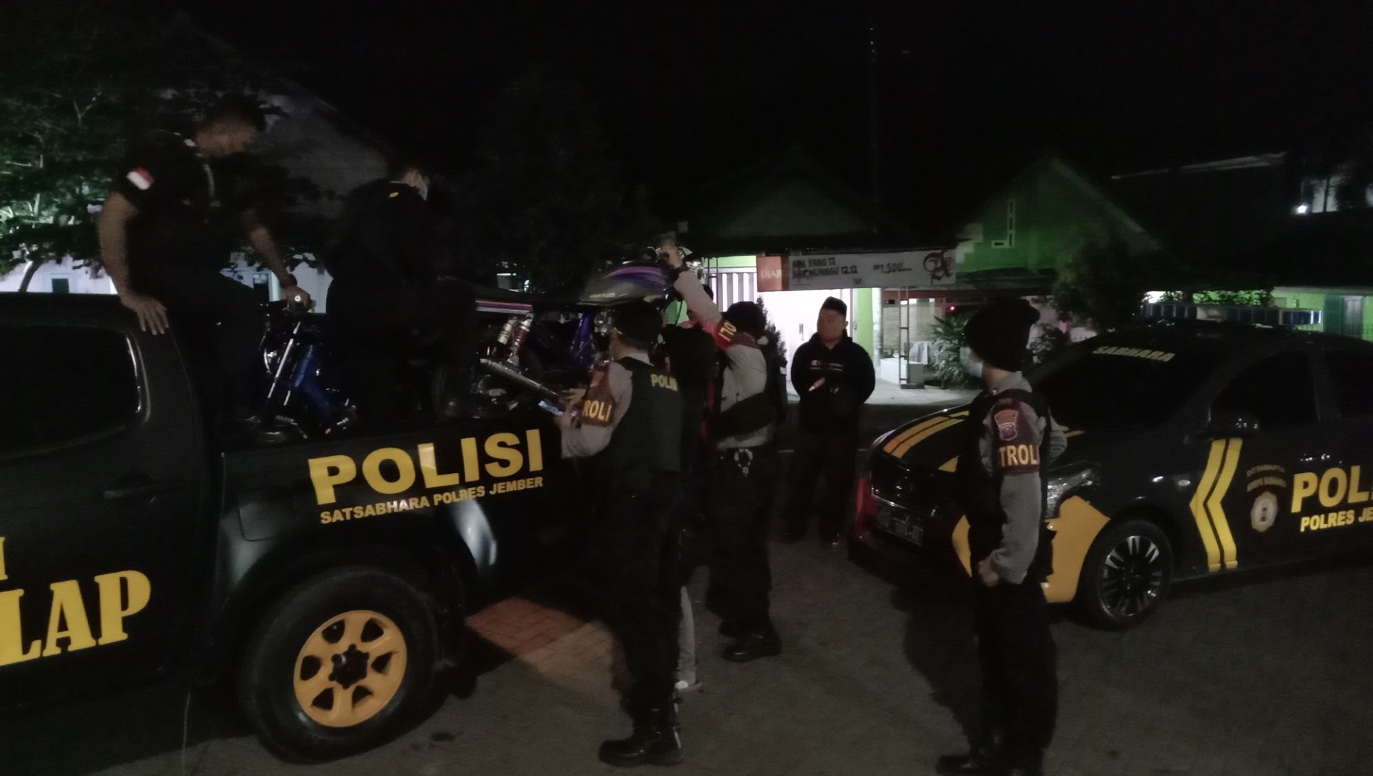 Dipimpin Bripka Medi ( Danru 1 Patko Samapta), Brigpol Rico ( Danru 2 Patko Sampta) dan Team Alap-alap Polres Jember membuahkan hasil pembubaran kerumunan dan ditemukannya sekelompok pemuda yang menggunakan knalpot brong dan sedang dalam kondisi mabuk.