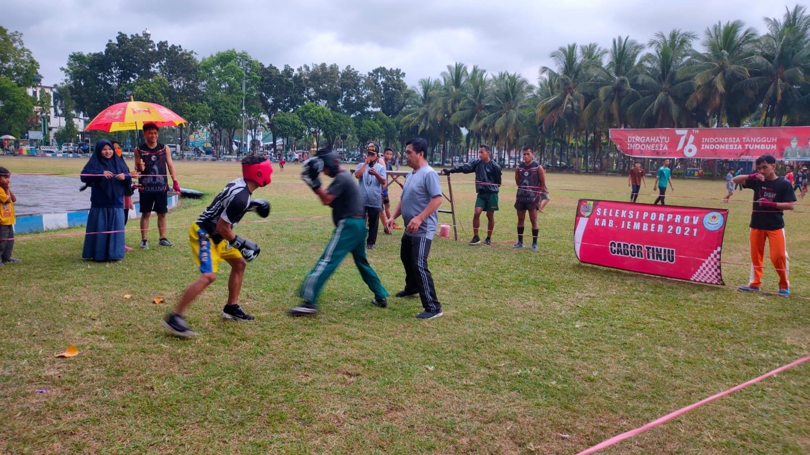 Jember.SGI. Seleksi Porprof 2021 cabor tinju yang di laksanankan di alun alun Jember selama empat hari.