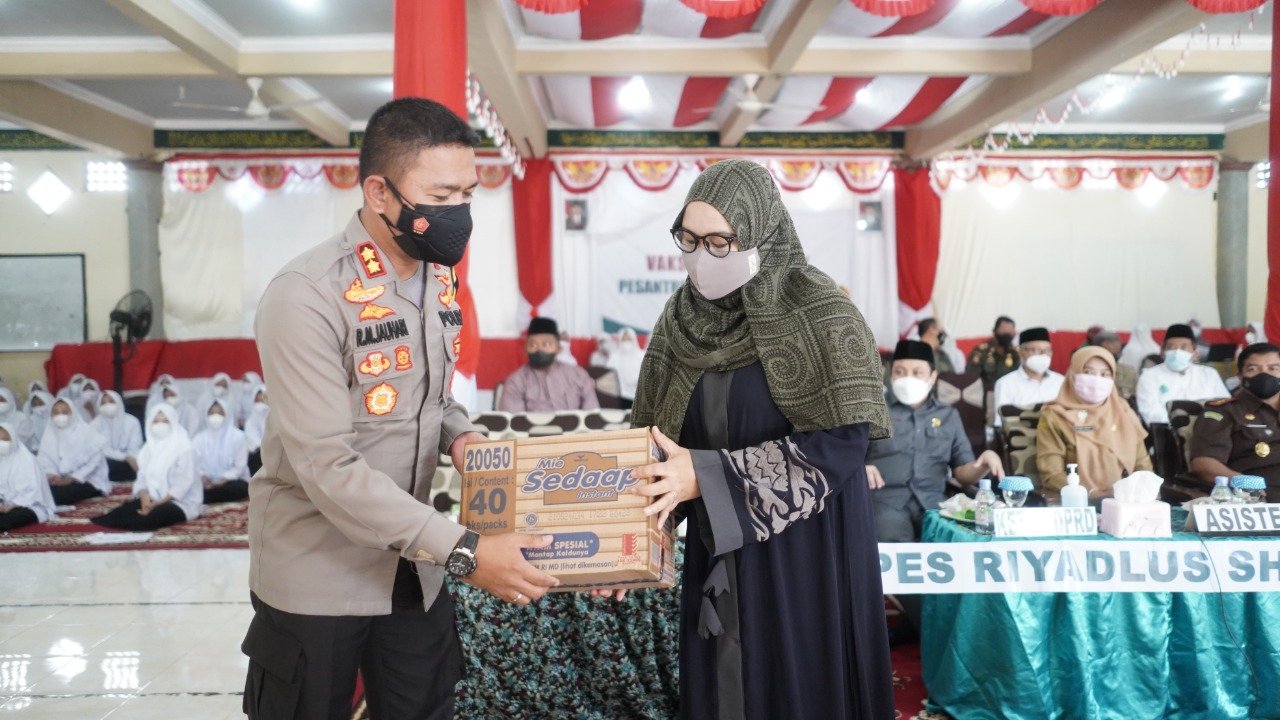 “Dalam kegiatan Vaksinasi Merdeka ini, total 1000 Santri dan Santriwati dari 3 Pondok Pesantren mendapatkan Dosis Vaksin Sinovac. Selain itu kami juga menyalurkan bantuan sosial kepada Pondok Pesantren berupa Beras dan Mie Instan,” ujar Alumni Akpol 2002 ini di Ponpes Roudlatul Malikiyah.