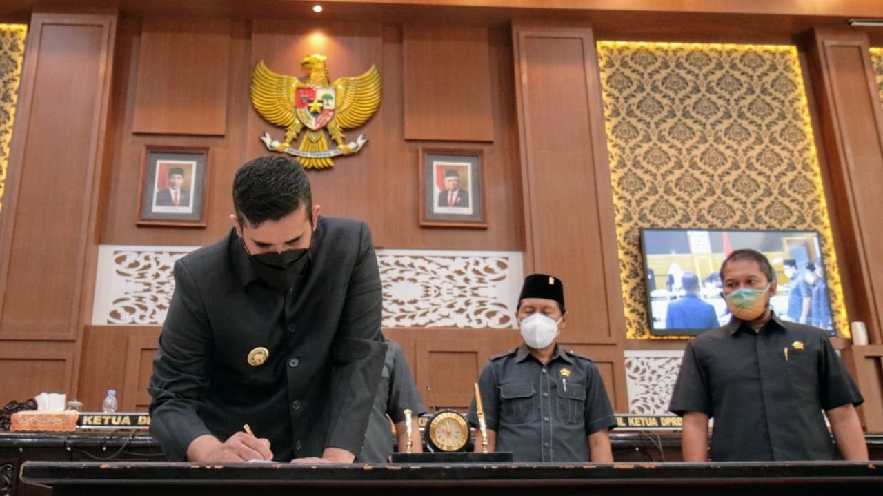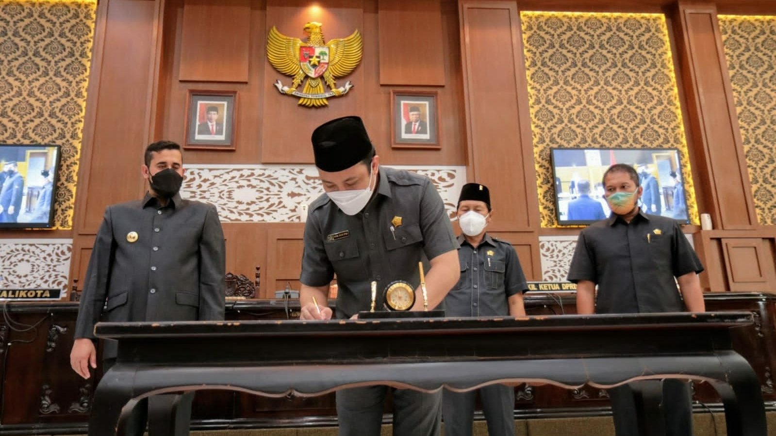 PROBOLINGGO.SGI. 11/09/2021. DPRD Kota Probolinggo menggelar rapat paripurna, Jum’at (10/9) malam dengan acara penandatanganan nota kesepakatan bersama antara Pemerintah Kota Probolinggo dengan DPRD Kota Probolinggo tentang Rancangan Kebijakan Umum Anggaran (KUA) dan Prioritas Plafon Anggaran Sementara (PPAS) P-APBD Kota Probolinggo Tahun Anggaran 2021.