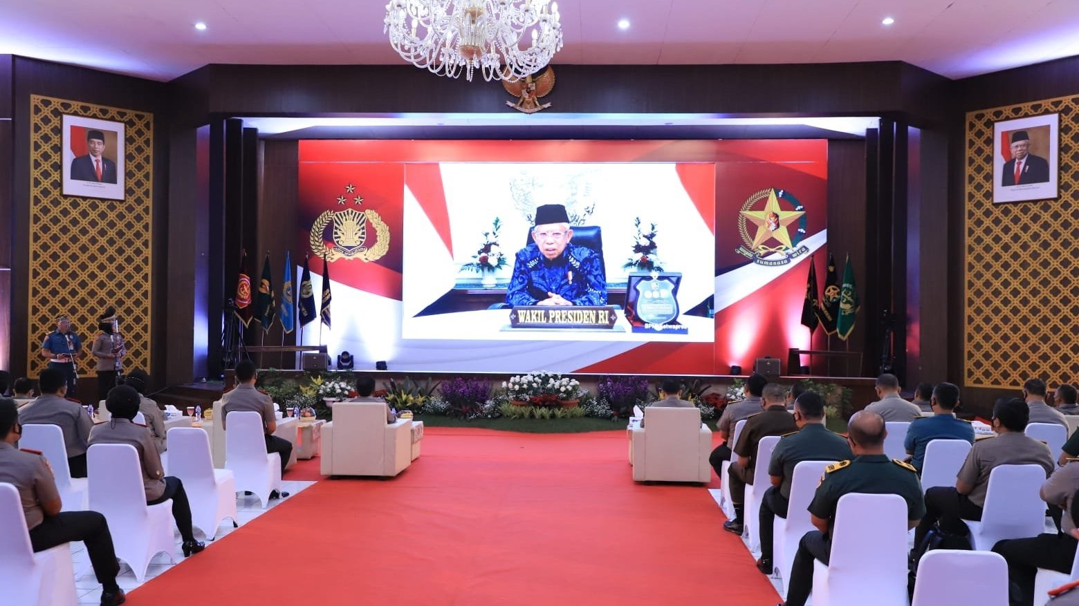 Mengakhiri sambutannya, tak lupa Wapres menyampaikan penghargaan kepada jajaran TNI dan Polri yang sejauh ini telah berperan secara signifikan dalam meningkatkan cakupan vaksin.