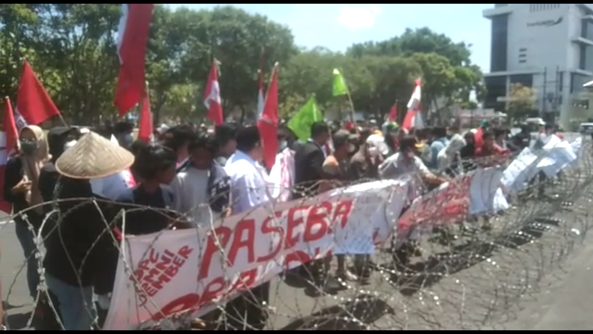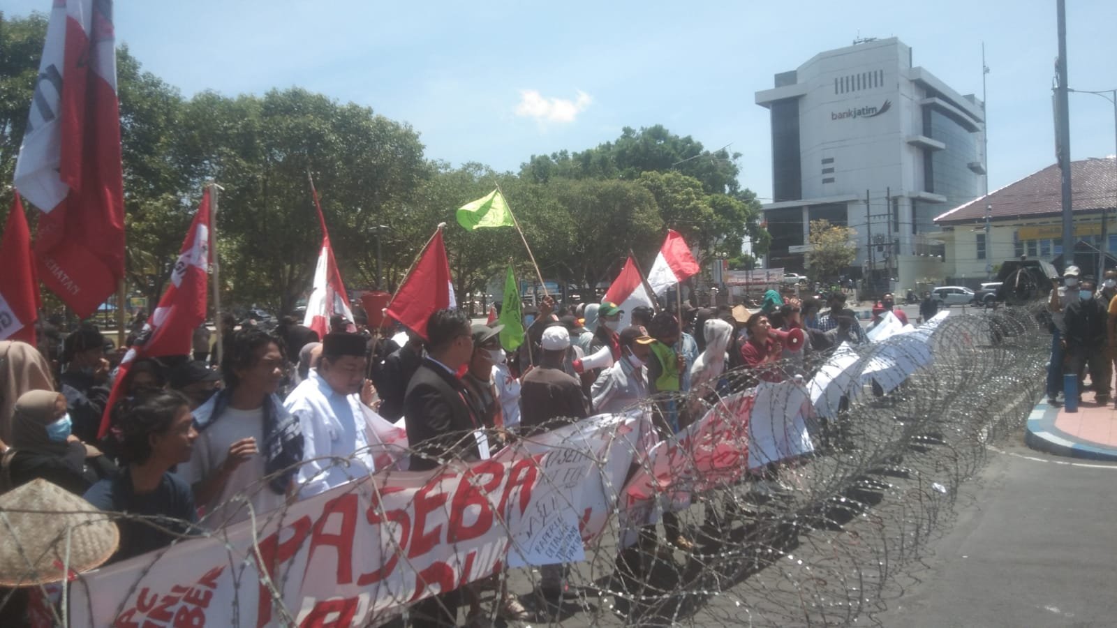 Jember,SGI. Puluhan mahasiswa yang tergabung dalam DPC GMNI Jember melakukan aksi unjuk rasa di depan Pemkab Jember sebagai bentuk penolakan terhadap adanya pertambangan dan tambak di wilayah Jember selatan, yang dinilai merugikan masyarakat Jember, pada Selasa (12/10/2021).