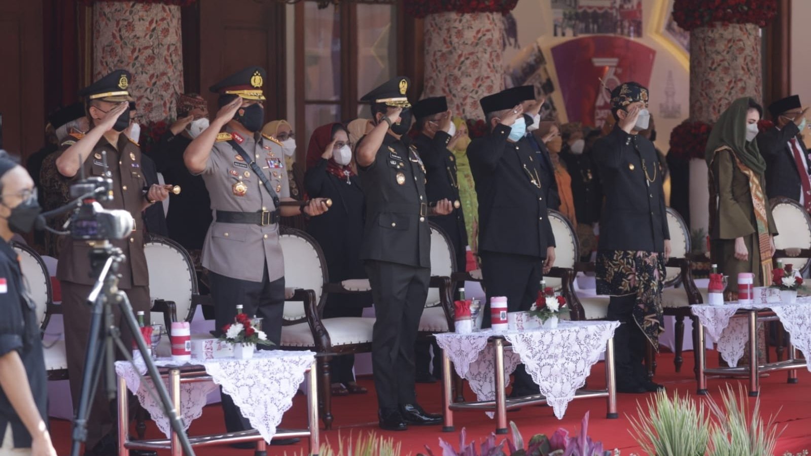 Surabaya.SGI. Kapolda Jatim Irjen Pol Nico Afinta dan Pejabat Utama Polda Jatim, mengikuti upacara dan tasyukuran peringatan Hari Jadi ke-76 Pemerintah Provinsi Jawa Timur, pada Rabu (13/10/2021). Peringatan hari jadi tahun ini bertemakan ‘Jatim Bangkit’, diharapkan tahun ini Provinsi Jawa Timur dapat segera bangkit dari pandemi virus Covid-19.