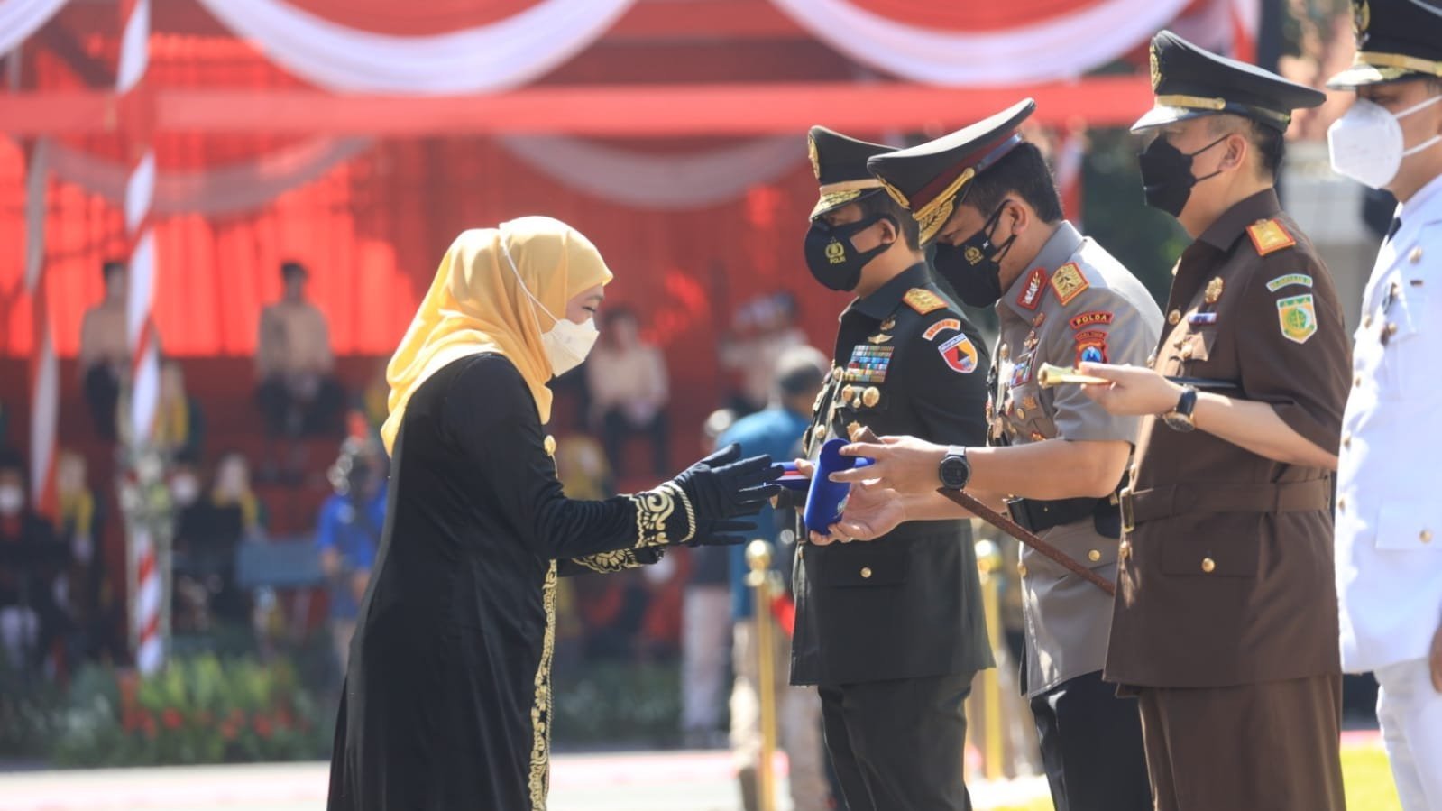 Dalam rangkaian kegiatan upacara ini, sejumlah Tokoh mendapatkan penghargaan berupa lencana Jer Basuki Mawa Beya, dari Pemerintah Provinsi Jawa Timur, yang dinilai telah berjasa membantu dalam penanganan pandemi Covid-19, maupun mengharumkan nama Jatim di kancah internasional.