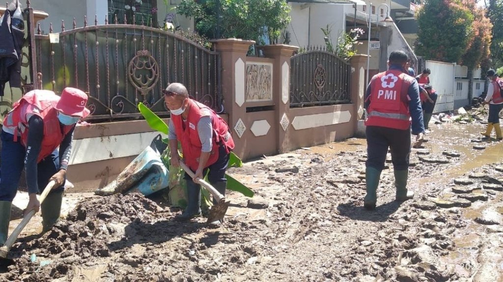 “Para relawan PMI sore hari tetap membantu membersihkan rumah-rumah warga Perumahan Bumi Mangli Permai yang sempat terkena banjir,” kata dr Tri Wiranto, pengurus PMI Kabupaten Jember yang kebetulan berdomisili di perumahan BMP.