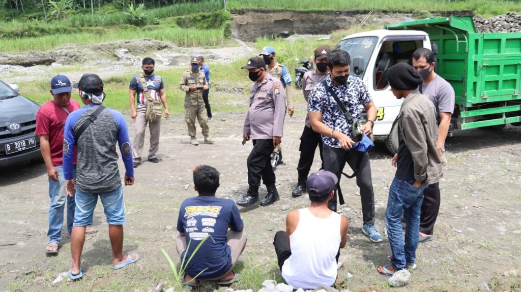 Saat di lokasi, petugas gabungan mendapati aktivitas penambangan pasir di aliran kali lahar yang diduga tak berizin sehingga petugas gabungan mengamankan enam pekerja, satu unit eskavator, dan satu unit dump truk di lokasi.