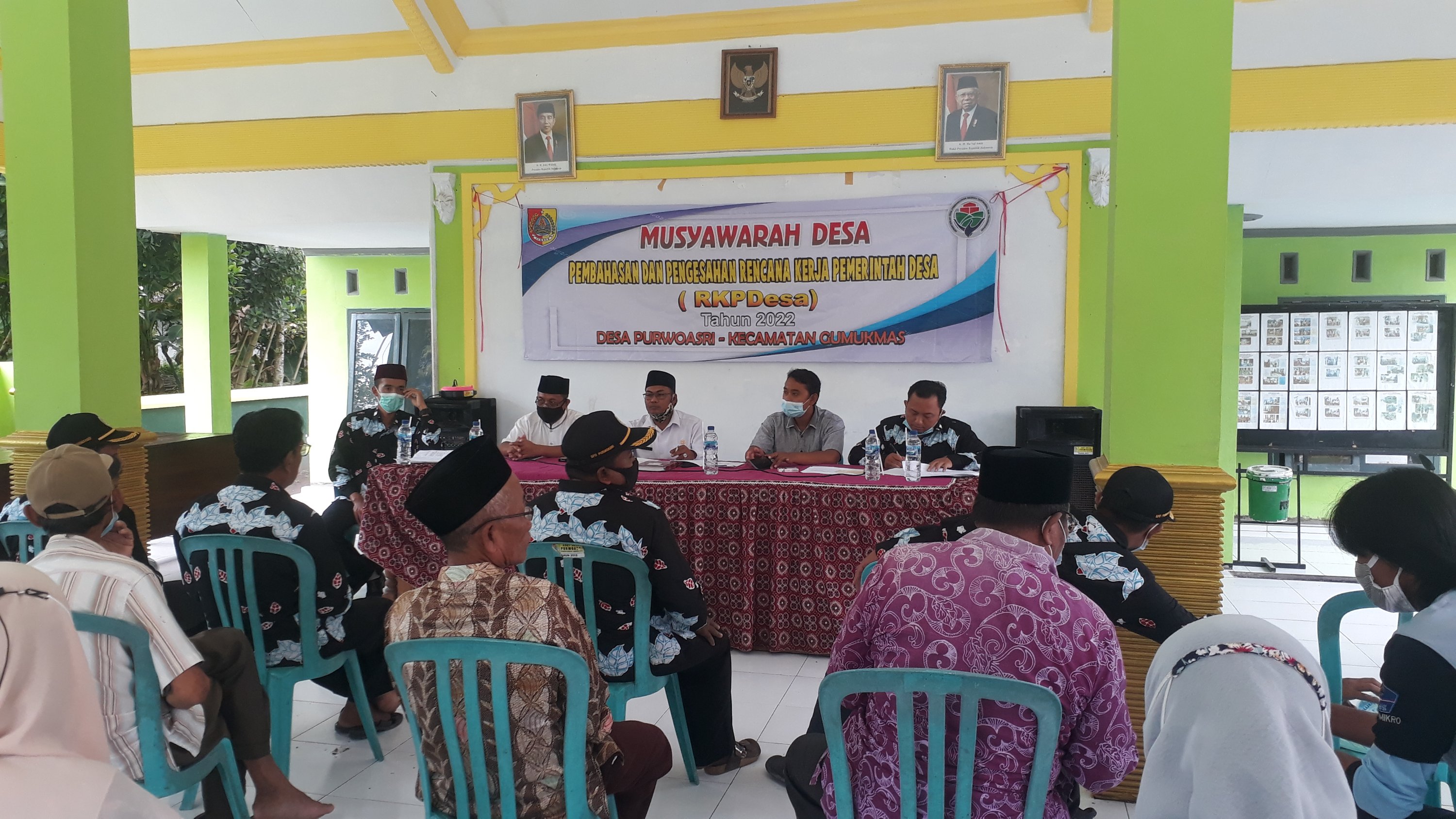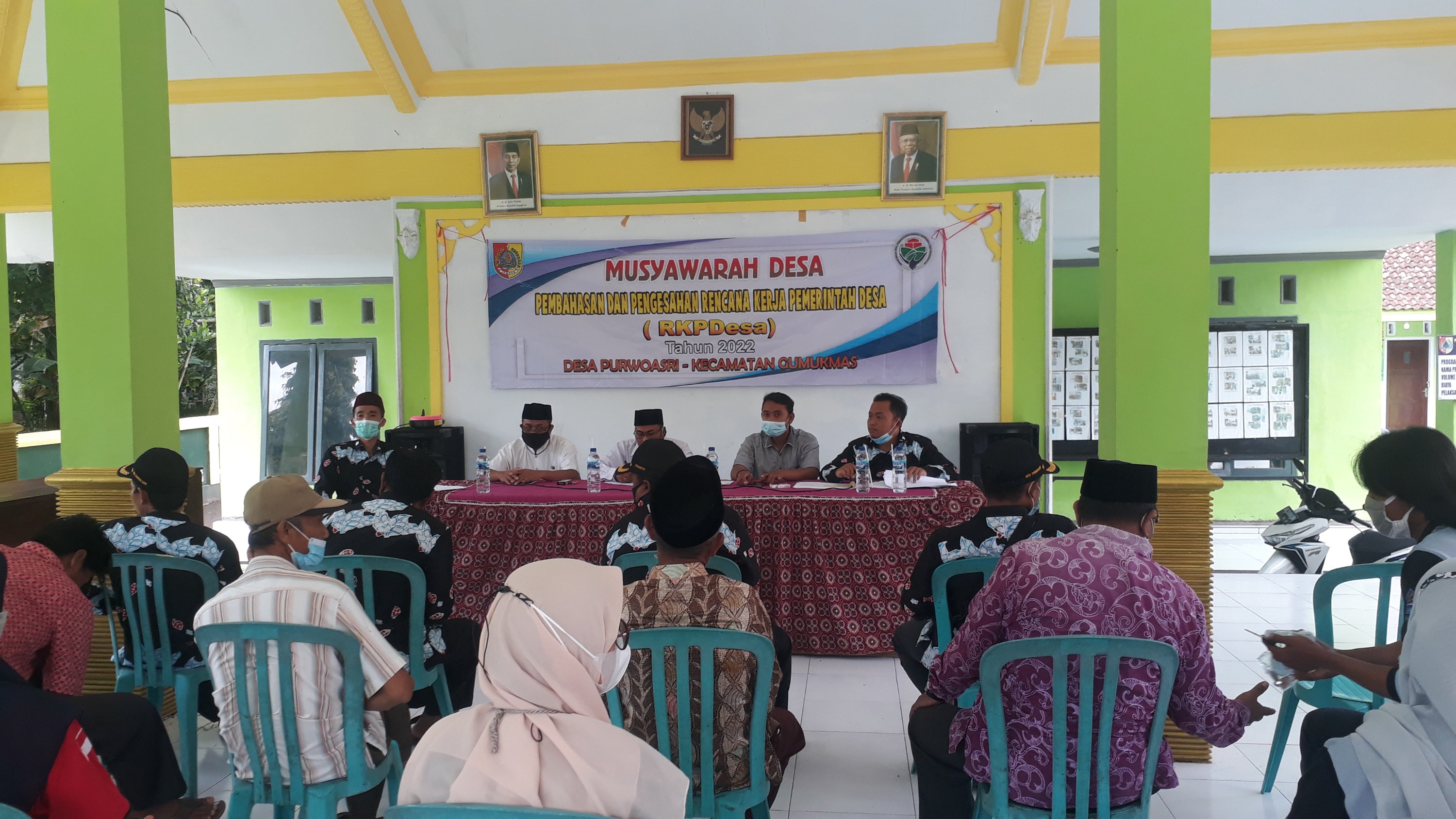 Jember.SGI. Pemerintah Desa Purwoasri Kecamatan Gumukmas Menggelar Musyawarah Desa membahas dan pengesahan RKP tahun anggaran 2022, Jumat 05/11/2021, di pendopo balai Desa, kegiatan ini dihadiri tokoh masyarakat serta seperti ulama tokoh pemuda, perwakilan dari ibu ibu kader serta aparat Desa.