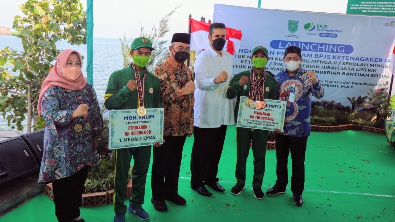 Bonus tersebut diserahkan Wali Kota Habib Hadi saat menerima kunjungan Menko Pemberdayaan Manusia dan Kebudayaan Muhajir Effendy, 29 Oktober lalu. Termasuk atlit panjat tebing kedua yang meraih medali emas dalam Pertandingan PON XX Papua 2021 kategori Boulder Beregu. Muhammad Salim juga memperoleh bonus senilai Rp 40 juta.