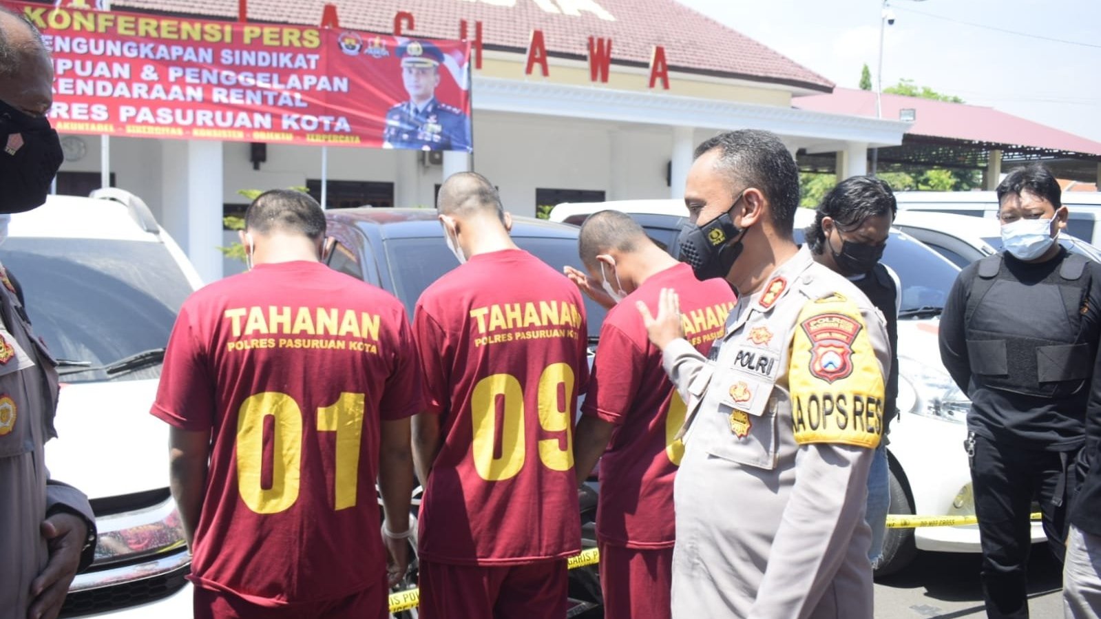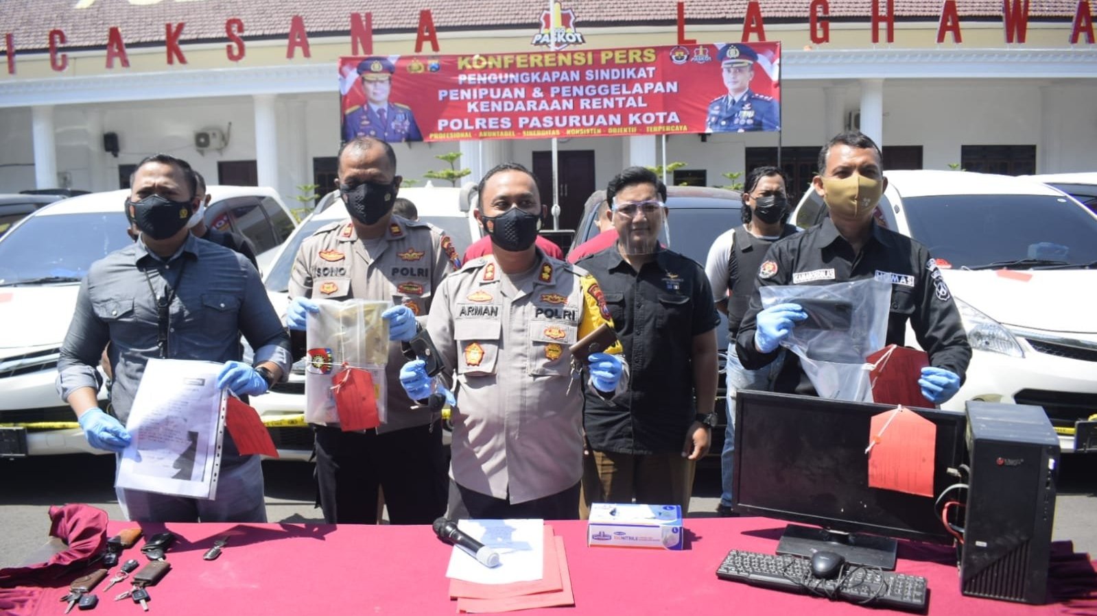 Pasuruan.SGI. Satuan Reserse Kriminal (Sat Reskrim) Polres Pasuruan Kota, melaksanakan Konferensi Pers hasil pengungkapan Sindikat Penipuan dan Atau Penggelapan Kendaraan Rental, Selasa (26/10) siang. Konferensi Pers di sampaikan oleh Kapolres Pasuruan Kota AKBP Arman S.I.K M.Si kepada awak media baik cetak maupun elektronik di Lapangan Apel depan Gedung Wicaksana Laghawa Polres Pasuruan Kota.