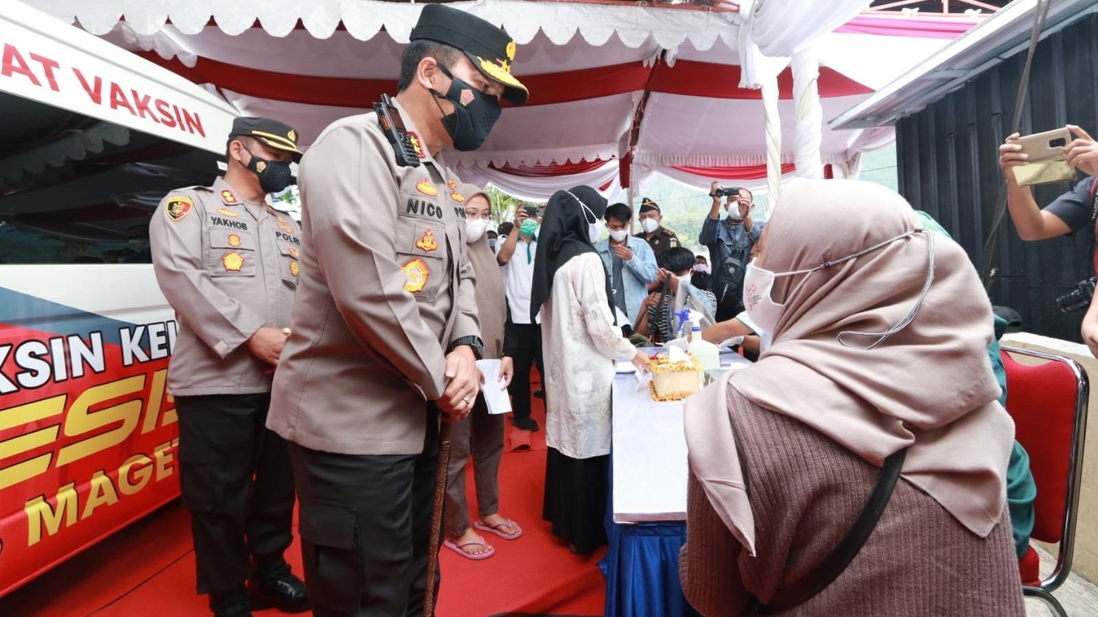Tak lupa Irjen Pol Nico Afinta juga mengucapkan terima kasih kepada panitia, kepada tenaga kesehatan, dan terlebih lagi kepada masyarakat yang mau datang dan mau dirinya divaksin dengan kesadaran yang tinggi.