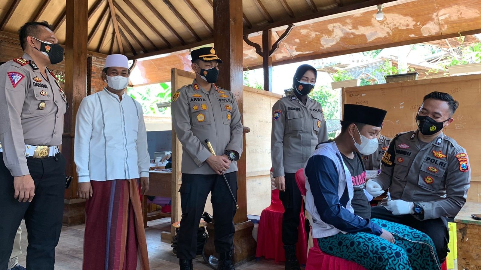 Probolinggo.SGI. Dalam rangka menyambut HUT Polwan ke 73, Kapolres Probolinggo AKBP Teuku Arsya Khadafi bersama rombongan meninjau pelaksanaan vaksinasi untuk santri dan warga di lingkungan Pondok Pesantren Nurul Qodim, Kecamatan Paiton, Kabupaten Probolinggo, Senin, (30/08/2021).