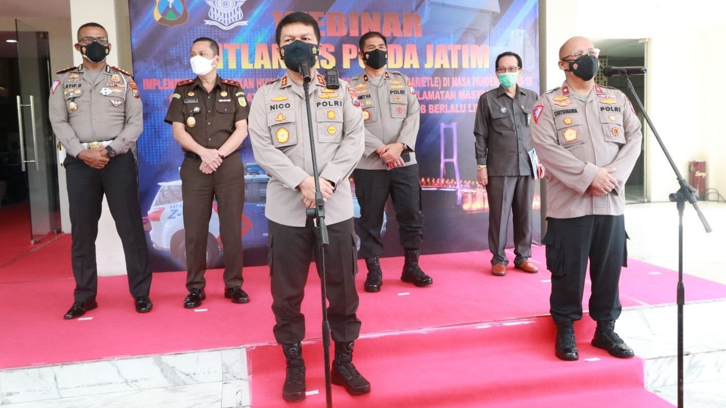 Kapolda Jatim Irjen Nico Afinta, menjelaskan, webinar ini dilaksanakan oleh jajaran Ditlantas Polda Jatim yang diikuti oleh Direktur Lalu Lintas seluruh Indonesia. Serta diikuti oleh Stakeholder, dari Kejaksaan, Pengadilan serta Akademisi dan juga Kapolres.
