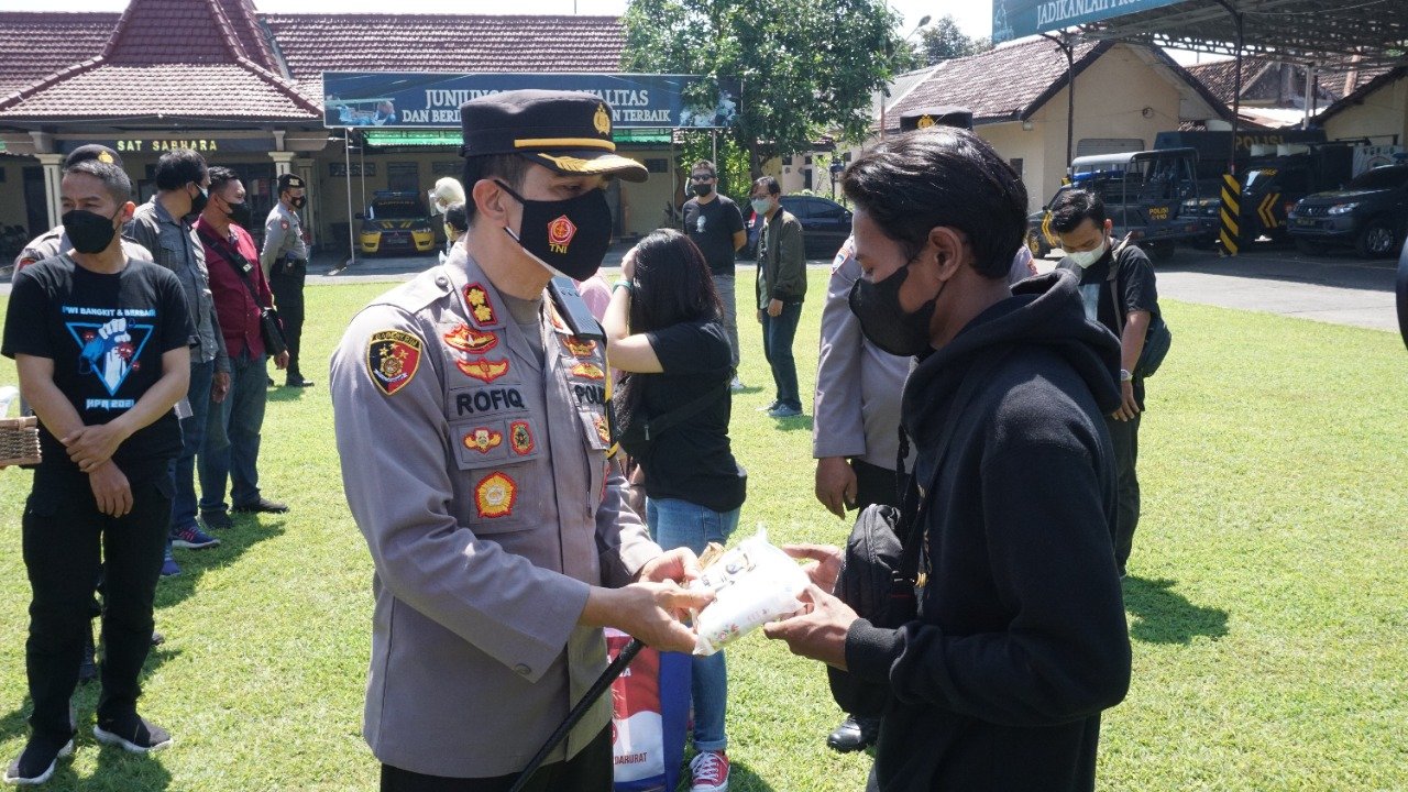 Polisi mengamankan tersangka dan membawa barang bukti Narkoba jenis Sabu,