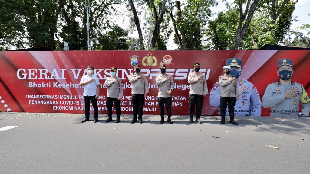 Kapolda Jawa Timur Irjen Pol Nico Afinta dalam kesempatan ini mengatakan. Hari ini jajaran Polda Jawa Timur, secara serentak melaksanakan vaksinasi yang ditargetkan sebanyak 23 ribu diseluruh jajaran Jawa Timur, kemarin pihaknya telah mendirikan 503 gerai vaksinasi, yang tersebar di seluruh jajaran Jawa Timur.