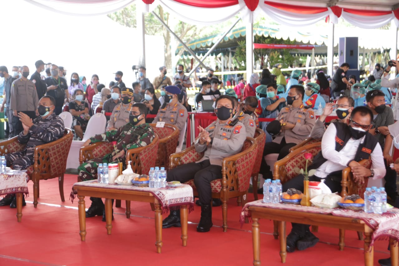 “ Vaksinasi ini merupakan satu di antara strategi Pemerintah untuk menekan angka penyebaran Covid-19. Namun demikian, i yang terpenting saat ini adalah masyarakat untuk tetap taat dalam menerapkan protokol kesehatan (prokes)”, jelasnya.