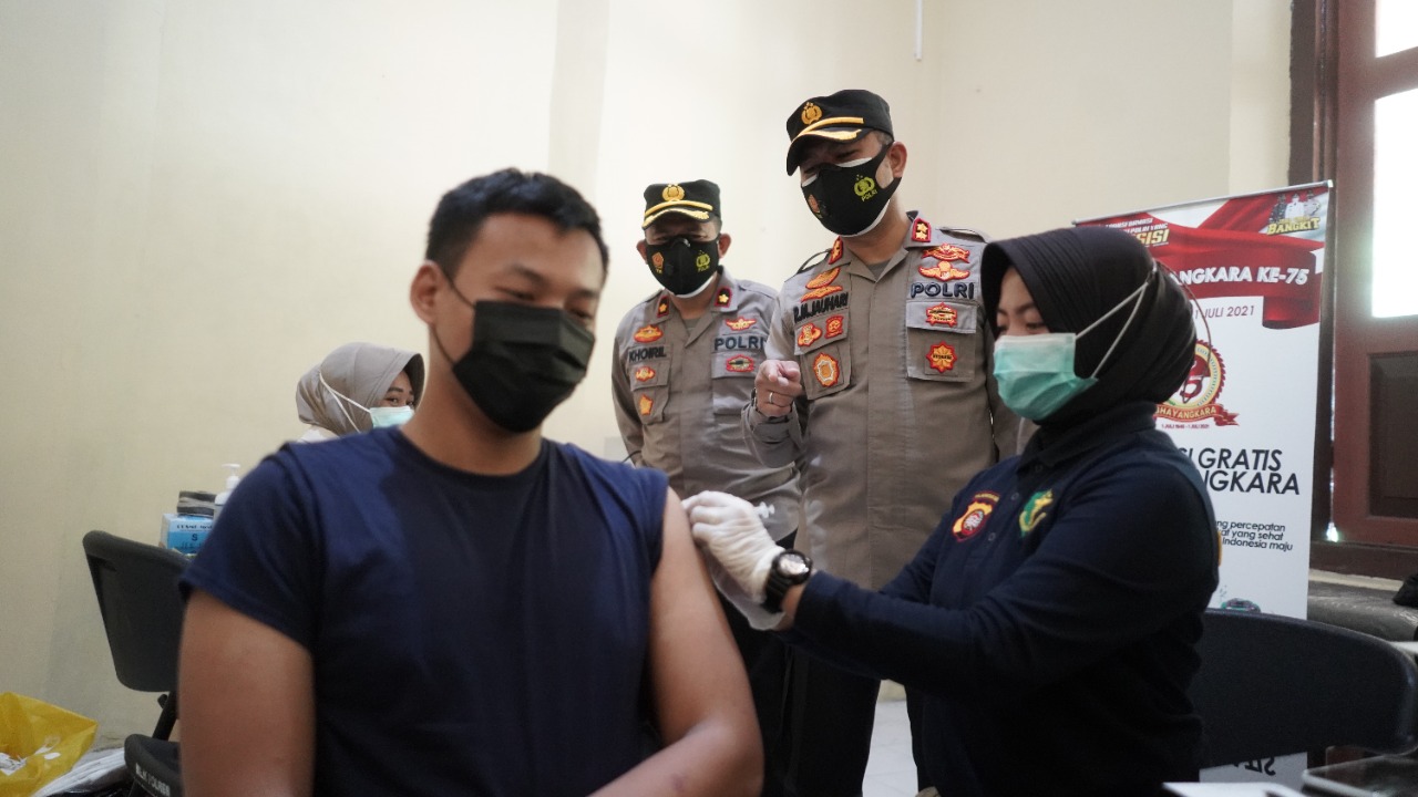 Dalam rangka HUT Bhayangkara ke-75 dengan tema Transformasi Polri yang Presisi Mendukung Percepatan Penanganan Covid-19 untuk Masyarakat Sehat da Pemulihan Ekonomi Nasional Menuju Indonesia Maju, Polri bersama dengan TNI serta Pemerintah Daerah (Pemda) mengadakan serbuan vaksinasi nasional serentak pada hari ini.