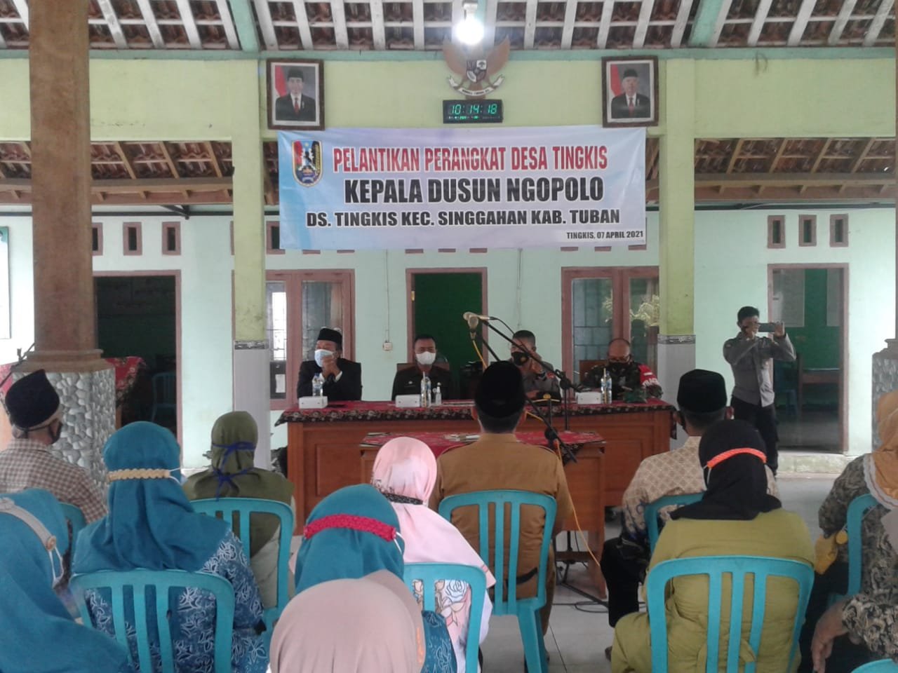 Tuban.SGI.Pelantikan perangkat Desa Tingkis Kepala Dusun (kasun) Ngopolo Desa Tingkis telah dilaksanakan bertempat di pendopo kantor Desa, Rabo 07/04/2021.
